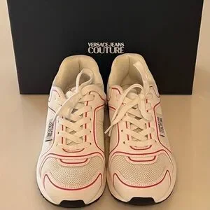 Versace Jeans white and pink Linea Fondo sneakers. Worn once. Size 40 UK which can be converted to approximately women’s 9.5. (They measure 11 inches long from toe to heel.) Like new! Shoe box not included.