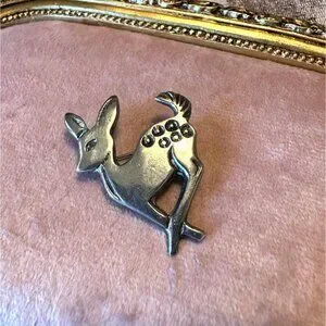 This vintage sterling silver brooch pin showcases an elegantly crafted deer motif with etched details. The piece exudes timeless charm, perfect for collectors or jewelry lovers who appreciate intricate, nature-inspired designs. Its safety clasp ensures secure wear, while its petite size adds a delicate touch of sophistication.