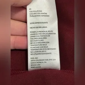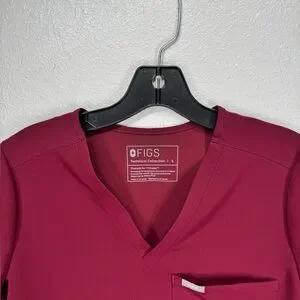 FIGS Catarina Technical Collection Scrub Top Short Sleeve Small Maroon FW1000