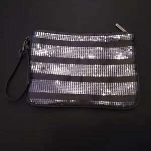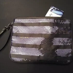 The grey cosmetics bag complete with silver sequins is used but in good condition.