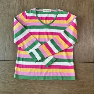 Fairway & Greene Women’s Striped V-Neck Sweater Size Medium