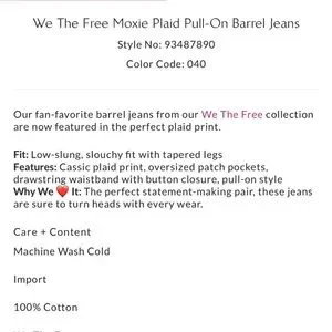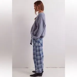 Free People WE THE FREE: Moxie Barrel Low Slung Pull On Jeans In Plaid …NWOT