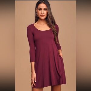 Who runs the world? With the Lulus Twirl Power Wine Red Swing Dress it will always be you! Lightweight jersey knit sweeps across a rounded neckline and falls to fitted three-quarter sleeves. Comfy swing silhouette flares gently to a perfect finish. Hidden side seam pockets.