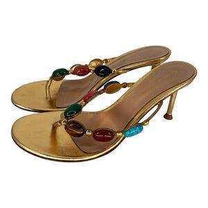 Gianvito Rossi Shanti Thong 70 Sandals Gold Jeweled Size 9
