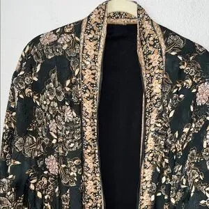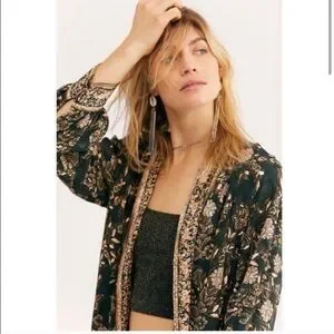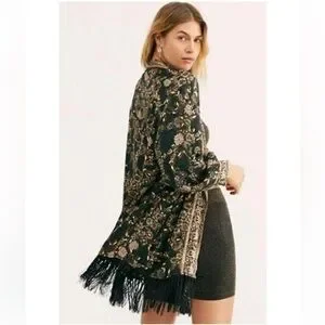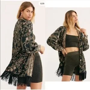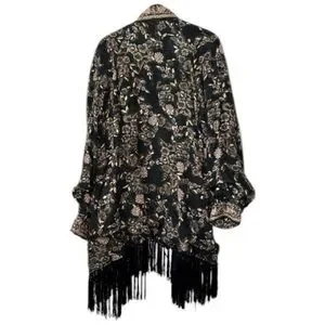 Free People Kaelin Embroidered Floral Fringe Kimono Open Jacket Size M