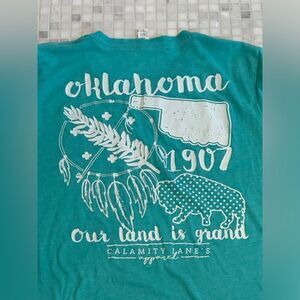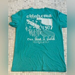 Oklahoma Bison Teal Cotton T-Shirt. Soft and light cotton material.