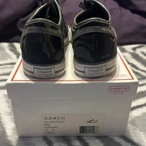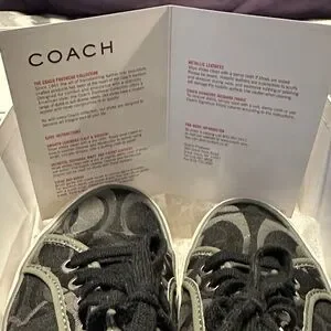 The Coach Dee 24 Optic C Women’s Sneakers in size 6.5 M are a stylish and comfortable choice for casual wear. These black and grey canvas shoes feature a lace-up closure and a rubber outsole for durability. With a lightweight design and comfortable fabric lining, these sneakers are perfect for everyday wear. The Coach brand ensures quality and style, making these sneakers a versatile addition to any woman's wardrobe.