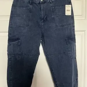 Stylish blue cargo jeans. Relaxed fit. Perfect for casual wear. Jogger ankle. This pant is a particular favorite of mine. So flattering and incredibly comfortable. Needed a smaller size so selling these 🔥🔥