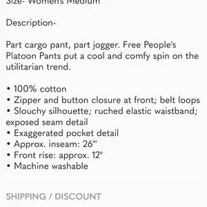 Free People WE THE FREE: Platoon Cargo Joggers..NWT