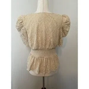 Jealous Tomato Womens Lace Peplum Top Size M Beige Romantic Coquette Babydoll