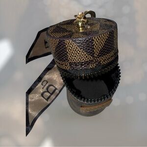 Stylish key holder by Vogue. Features a classic brown checkered pattern. Gold accents add a touch of luxury. Ideal for organizing keys with flair.