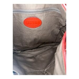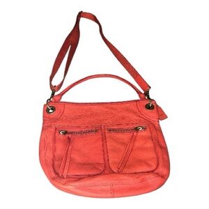 Fossil Orange Red Leather Zipper Front Pocket Crossbody Shoulder Bag Purse