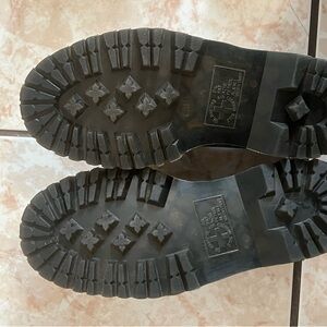 Classic black leather oxfords. Features durable lace-up style. Signature yellow stitching.