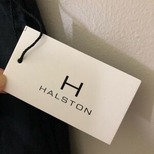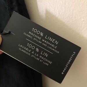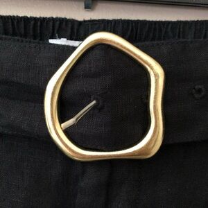 HALSTON Classic 100% Linen Washable Black Pants Belt Gold Buckle & Elastic Waist