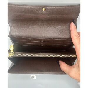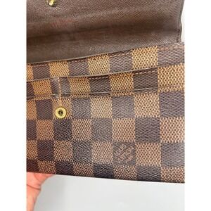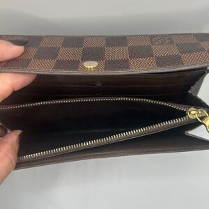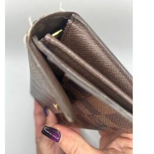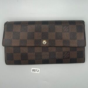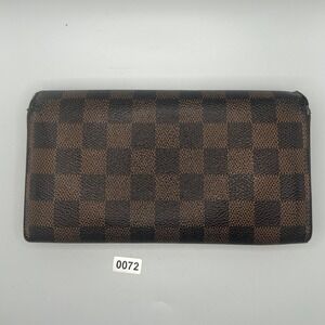 Keywords: Louis Vuitton Wallet, Damier Ebene, Canvas Wallet, Designer Wallet, Luxury Wallet, Brown Wallet, Checkered Pattern, Coin Purse, Organizer Wallet, Authentic Louis Vuitton, Preowned Designer, Fashion Accessory, Zippered Wallet