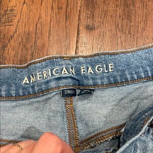 Trendy light blue jean shorts with a distressed finish. Perfect for casual wear.