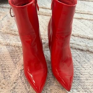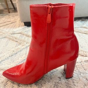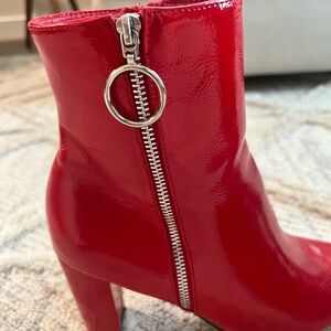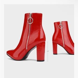 Step out in style with these chic red chunky heel ankle boots. Perfect for adding a bold touch to any outfit.