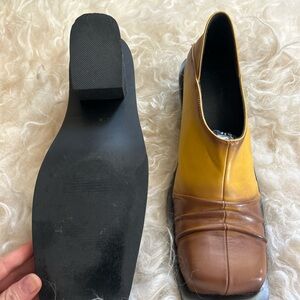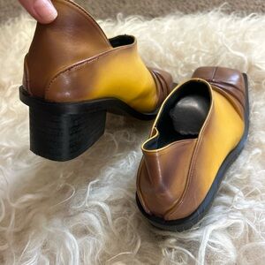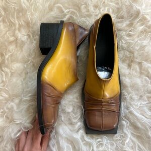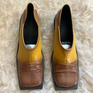 FIDAN NOVRUZOVA Brown and Yellow Convertible Chunky Mules