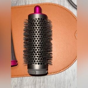 Dyson air wrap set with pink accents. Includes multiple attachments. Comes in a sleek tan case. RAND NEW WITHOUT TAGS, NEVER USED ONCE.