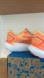 Dynamic Brooks running shoes in bright orange with striking purple details.