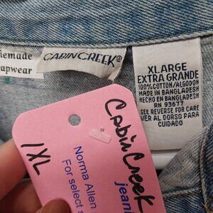 3758 Size 1XL Upcycled Cabin Creek Jean Tunic In Purple and Red Quilt Trim.