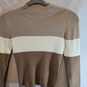 THE SLOPE LONG SLEEVE NEUTRAL BROWN CREAM COLOR BLOCK SWEATER CROPPED MEDIUM