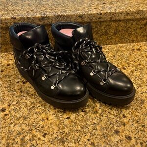 Ganni High Top Winter City Boots Black Leather Shearling Size 40 US 10
