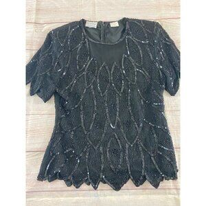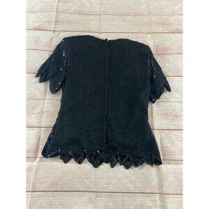 Vintage Stenay Women's Black Silk Sequin Top - Medium
