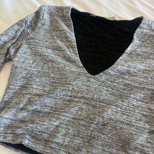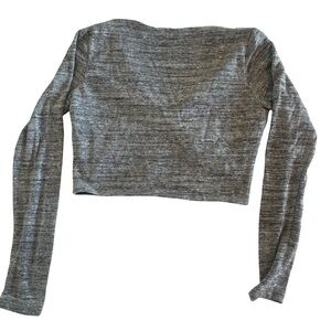 Alice + Olivia Jori Cropped Top Grey Long Sleeve V Neck Shirt Size Small