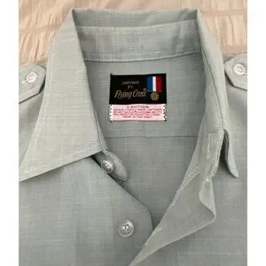 Vintage Men's FLYING CROSS Uniform Shirt - Green Short Sleeve Size Small 10 1/2