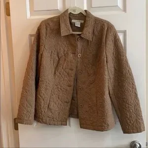 Requirements Embroidered Quilted Jacket Tan Sz L Perfect with a scarf