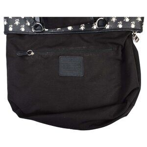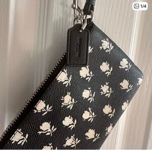 Elegant Coach tote with floral pattern. Black leather with white accents. Perfect for everyday use. Comes with wristlet.