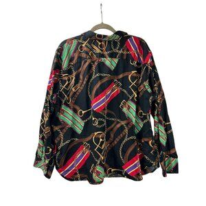 Lauren Ralph Lauren Women's Size 3X Equestrian Print Button Down Shirt