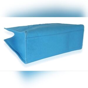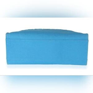 The Versace La Medusa Blue Women's Canvas Logo Tote is a stylish and versatile bag that is perfect for various occasions such as travel, weddings, parties, and everyday use. This large tote features a square shape with a button closure and gold hardware accents. The exterior is made of canvas in a beautiful blue color, with the iconic Versace logo pattern. The bag has double pink handles, inner pockets, and a fabric lining in a matching blue color. Made in Italy, this designer tote comes with a maintenance card and original dust bag, making it a luxurious and practical accessory for any woman's wardrobe.