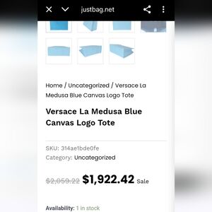 Versace La Medusa Blue Women's Canvas Logo Tote RETAIL $1922 (COA incuded)