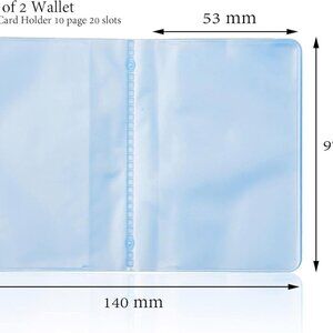 Plastic Wallet Insert Credit Card Holder Transparent 10 page 20 slots, 2 Pack