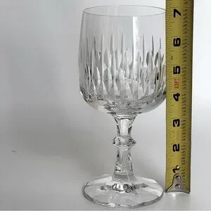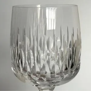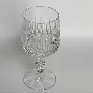 Keywords: Schott Zwiesel Flamenco, Flamenco SCZFLA, discontinued crystal glass, vintage wine goblet, cut vertical design glass, blown glass stemware, 1980s crystal glassware, collectible crystal wine glass
