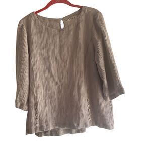 Soft Surrounding Womens Taupe Gauzy Lagenlook Top PL Button Detail Flowy Casual