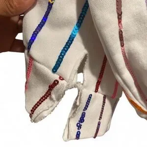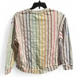 Stylish sweater with multicolor sequin stripes. Perfect for adding a pop of color to any outfit.
