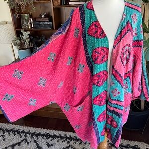 Kantha Bae Gaia Colorful Floral Kimono NWOT OS. Huge pockets, big oversized fit and absolutely beautiful back on this one! Looks like a watercolor painting! Never worn or washed. Smoke free. Thanks.