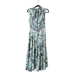 From the striking safari print to the perfectly-pleated skirt, this open-back SALONI midi dress is a walking work of art. $495 original retail.