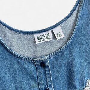 Vintage National Wildlife Federation Embroidered Blue Birds Denim Jumper Dress