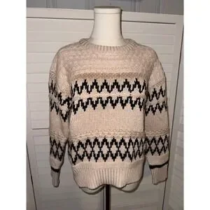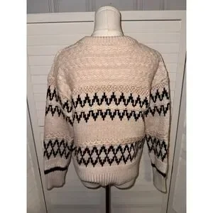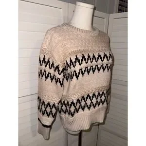 Skies Are Blue Fair Isle Knit Sweater Cream Black Zigzag Pattern Crew Neck XS