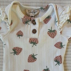 Carter’s Knitted Dress and Strawberry Print Onesie Outfit Bundle. Size 3 months