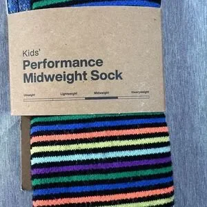 The NEW Burton Kids' Performance Midweight Merino Wool snow Ski Socks in size S/M are perfect for young skiers looking to stay warm and comfortable on the slopes. Made from high-quality wool and Merino Wool, these socks offer excellent insulation during the winter season. The mid-calf length and crew style make them ideal for skiing, and the striped multicolor design adds a fun and stylish touch. With the trusted Burton brand and focus on performance, these socks are a must-have for any young winter sports enthusiast.