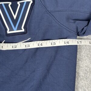 The product is a women's XS blue Nike Dri-Fit full-zip hoodie featuring the Villanova Wildcats team logo, perfect for basketball fans looking to show their team spirit. Made by Nike, a trusted brand in sports apparel, this jacket is designed for comfort and style during the regular season. With a sleek design and high-quality materials, this hoodie is a must-have for any woman wanting to represent the Villanova Wildcats in a stylish way.