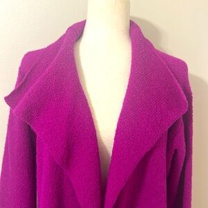 Eileen Fisher Women’s Magenta Boiled Wool Open Cardigan Sweater Sz Medium Chic