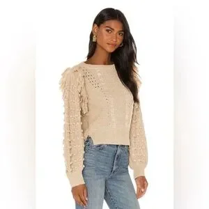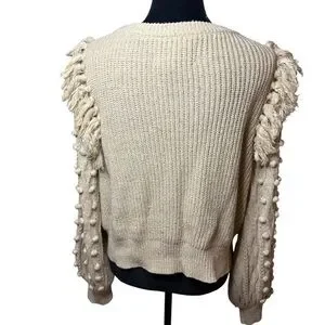 Cleobella | Lima Knit Sweater with Fringe and Pom Pom Sleeves | Sz M