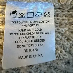 Chic cream sweater with intricate knit design. Features textured sleeves for a stylish look. Perfect for versatile wear.