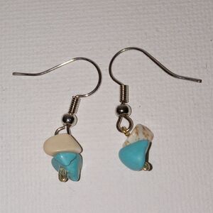 Teal and white stone chip earrings with silver plated metal and ear wires